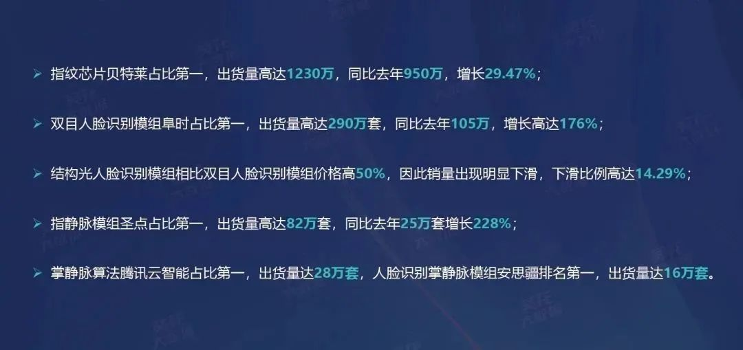 2023年12月23日,CSS 2023第四屆中國(guó)智能家居(深圳)峰會(huì)在騰訊濱海大廈隆重舉行,《2023智能門鎖行業(yè)白皮書》也重磅揭曉。根據(jù)白皮書發(fā)布的數(shù)據(jù),阜時(shí)科技人臉識(shí)別模組全市場(chǎng)出貨290萬套,連年穩(wěn)居第一,占比40%以上,是當(dāng)之無愧的行業(yè)銷冠。