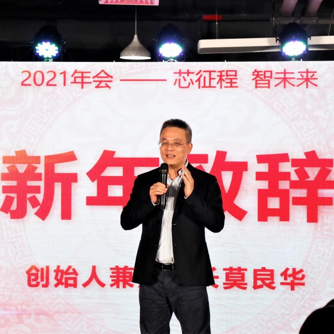 年會(huì)伊始,阜時(shí)科技創(chuàng)始人兼董事長莫良華發(fā)表了新年致辭。