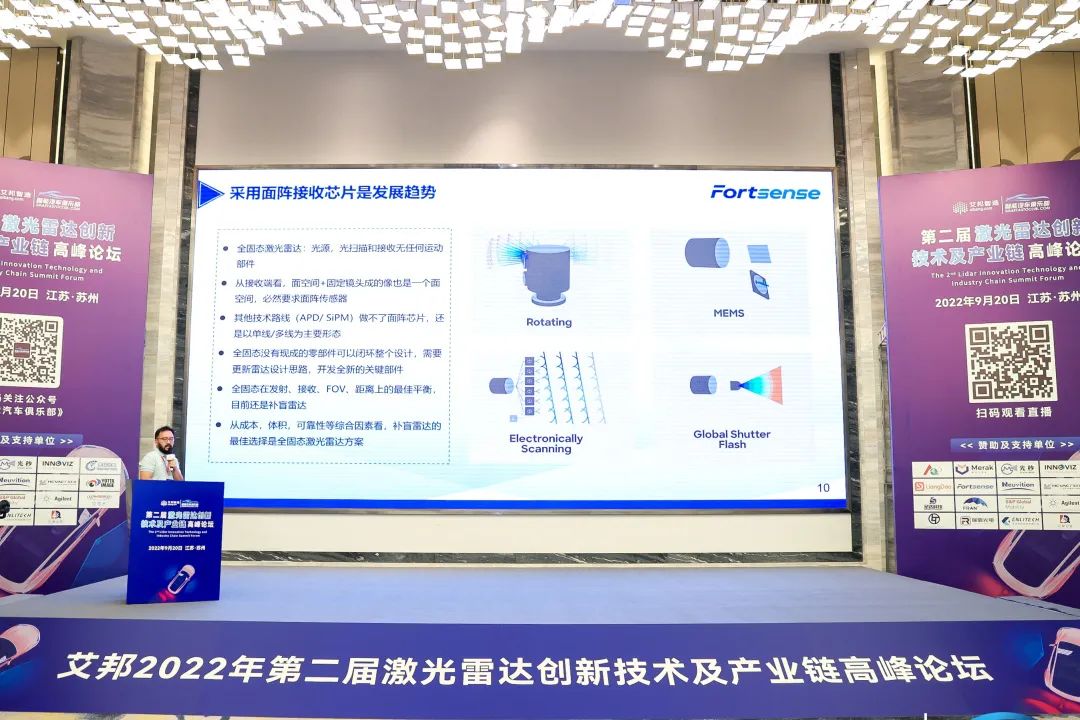 在本次論壇中,阜時(shí)科技CTO王李冬子發(fā)表題為《面陣SPAD在全固態(tài)補(bǔ)盲激光雷達(dá)中的應(yīng)用》的主旨演講。他總結(jié)了激光雷達(dá)行業(yè)的發(fā)展現(xiàn)狀及技術(shù)路線,從阜時(shí)的角度,解讀行業(yè)未來趨勢(shì),并介紹阜時(shí)科技研發(fā)成果之一——面陣激光雷達(dá)SPAD芯片。該系列芯片主要針對(duì)的應(yīng)用場(chǎng)景是全固態(tài)補(bǔ)盲激光雷達(dá)。