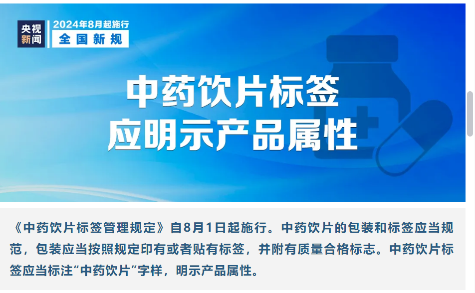 本月起一項(xiàng)關(guān)于中藥飲片的全國新規(guī)開始實(shí)施。國家藥監(jiān)局發(fā)布的《中藥飲片標(biāo)簽管理規(guī)定》,自2024年8月1日起施行。其中,保質(zhì)期標(biāo)注自2025年8月1日起實(shí)施。中藥飲片的定義按照中國藥典炮制通則中規(guī)定[1],根據(jù)藥材自身性質(zhì),以及調(diào)劑、制劑和臨床應(yīng)用的需要,所采取的一項(xiàng)獨(dú)特的制藥技術(shù)。藥材凡經(jīng)凈制、切制或炮炙等處理后均稱為”飲片”。